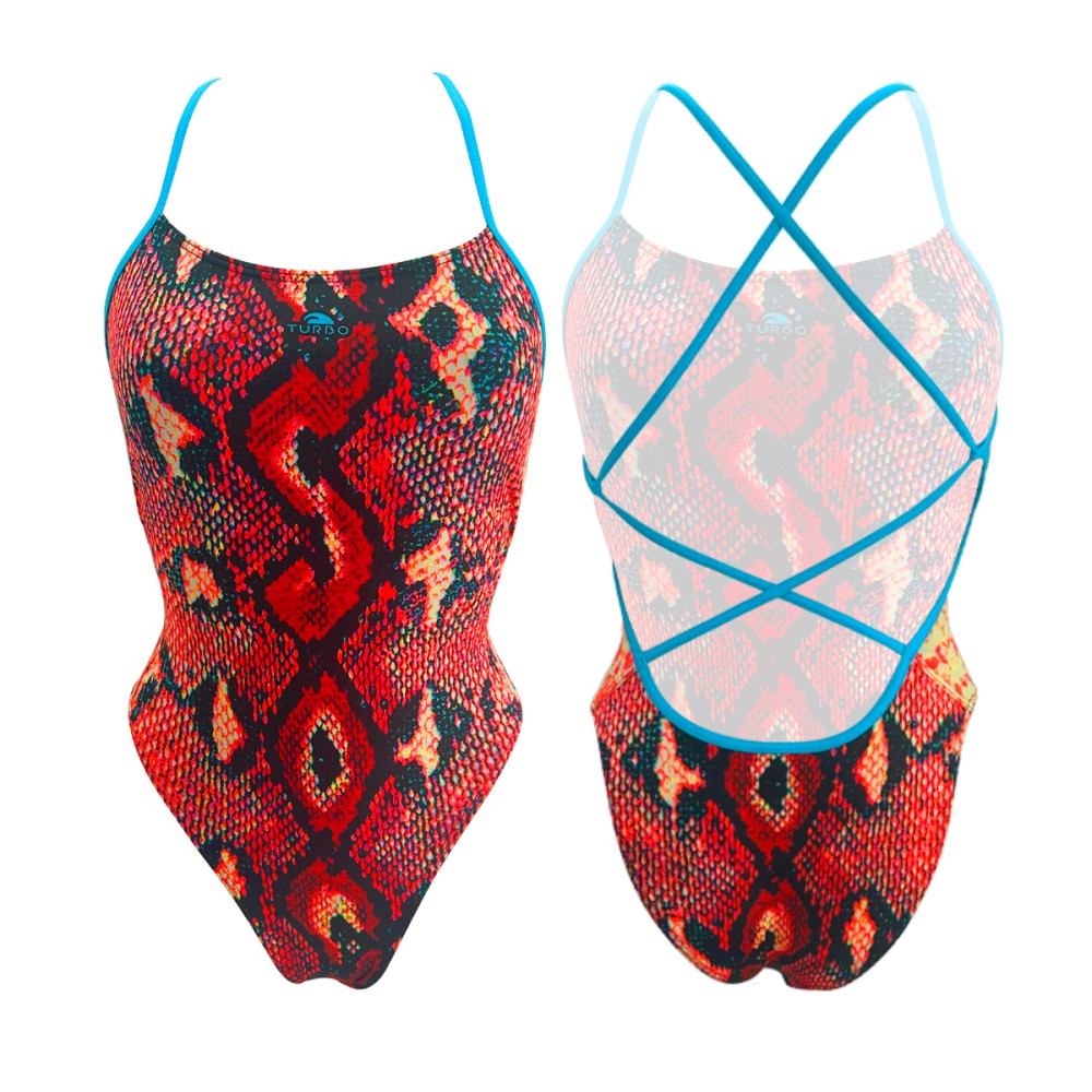 Cuciture rinforzate e spalline strette a doppio incrocio che offrono libertà di movimento ed apertura totale sul retro.